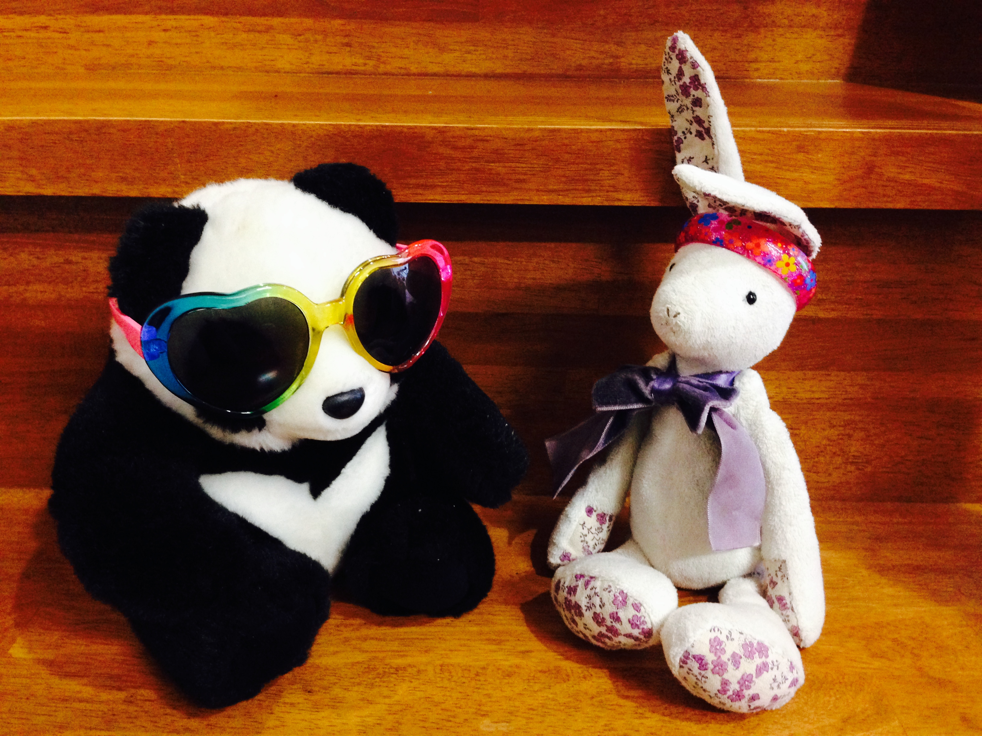 Since my daughter was a baby, she’s been obsessed with rabbits (usagi, in Japanese). We first had a stuffed sheep doll for her, but she quickly became enamoured of a musical pink bunny whose cord she could pull to start up a lullaby. When my wife’s great-grand aunt brought a white bunny with a purple ribbon as an early birthday gift, my daughter was hooked.