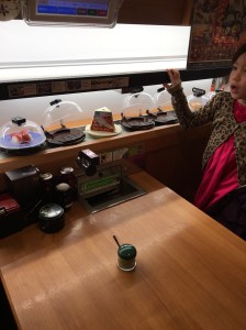 As a reward to both girls for their hard work in setting up fun activities at the party, we took them to a local kaiten sushi 回転寿司 (“rotating sushi”) store called Kura.